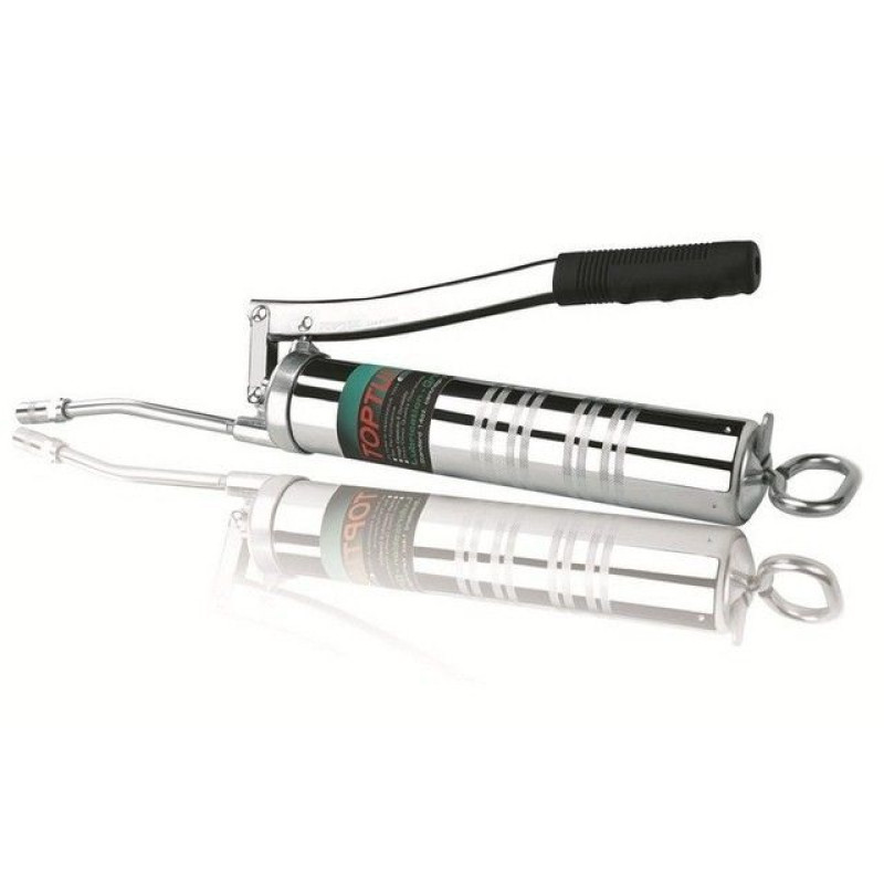 Шприц имеет рычажно-плунжерный механизм, который считается более стандартным и удобным по сравнению с пистолетным типом. Рабочее давление шприца Топтул составляет 310 бар, давление разрыва 690 бар, объем 400 мл. Подходит для большинства туб для смазки. На 30 грамм смазки приходится около 40 ходов. Применим при смазывании моторной, ходовой части автомобиля и других трущихся деталей машин и агрегатов. Общая длина шприца 530 мм, в комплекте идет жесткая трубка 140мм с 4-х кулачковым зажимным наконечником.