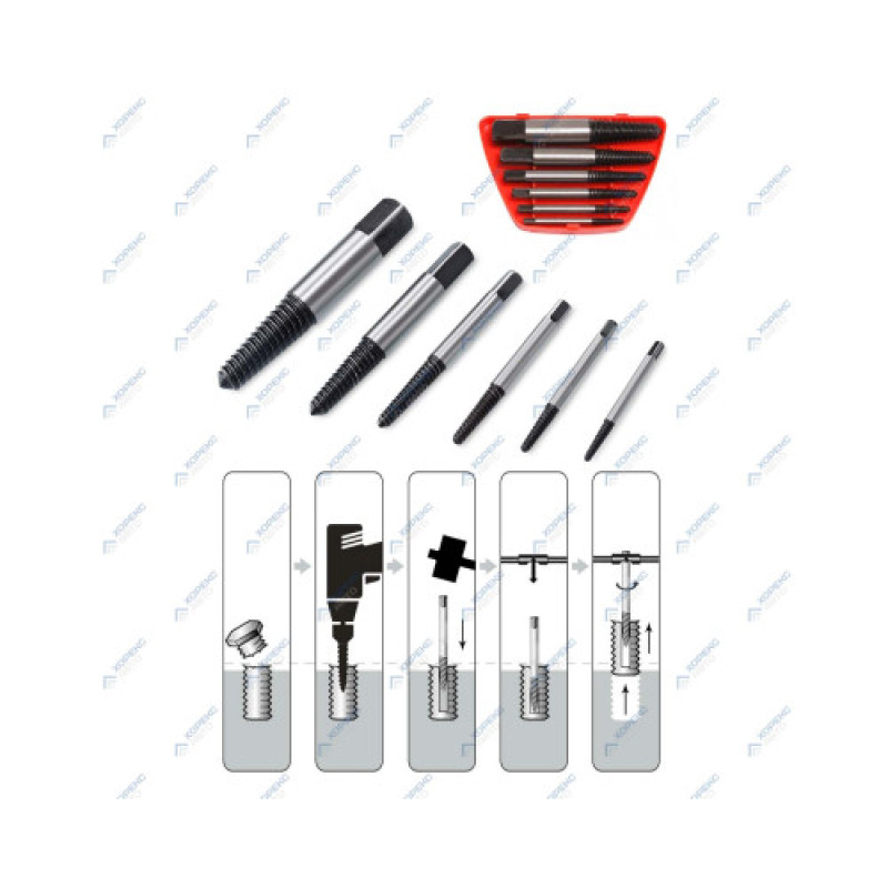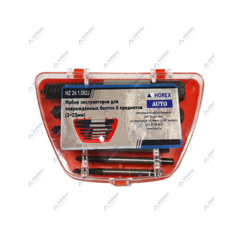 Набор экстракторов для поврежденных болтов 6 предметов (3-25 мм) Хорекс Авто HZ 24.1.062S.