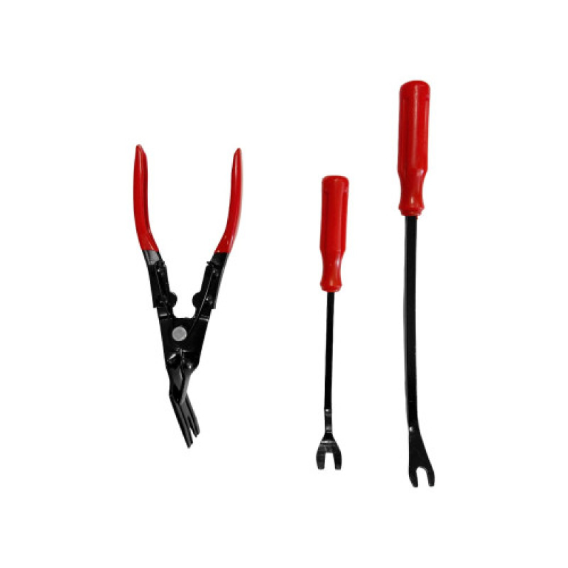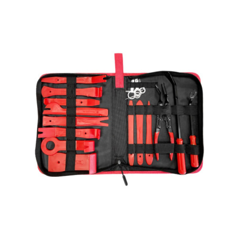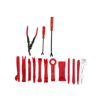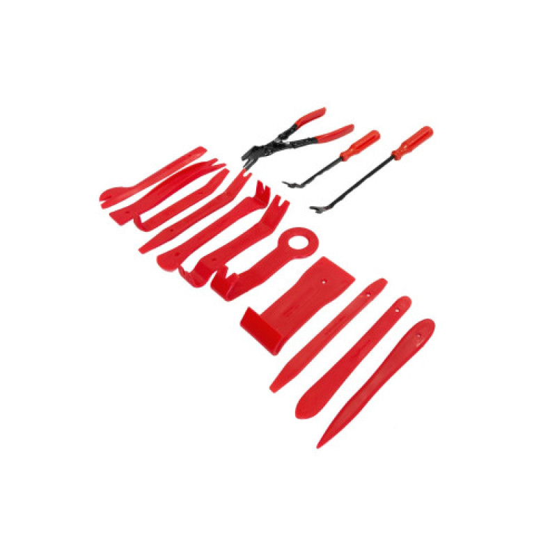 Используется для быстрого и удобного демонтажа обшивки и деталей интерьера автомобиля: элементов приборной панели, автомагнитол, декоративных накладок. Инструменты набора изготовлены из прочного пластика, что позволят снять обивку и пластиковые панели, не царапая и не нанося повреждений поверхностям.