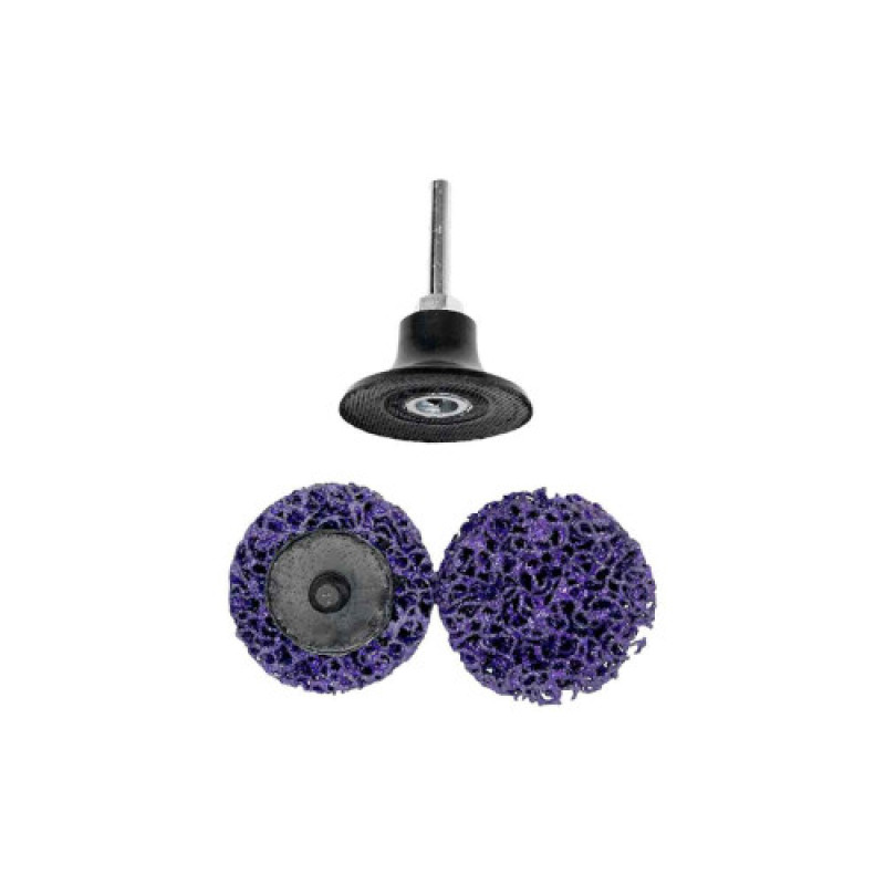Зачистные круги фиолетового цвета очень грубой зернистости. Имеют открытую агрессивную структуру, прочную режущую кромку. В процессе работы не засаливаются и меньше нагреваются. В отличии от обычных проволочных щеток эти круги более эффективны и имеют большой срок службы.
