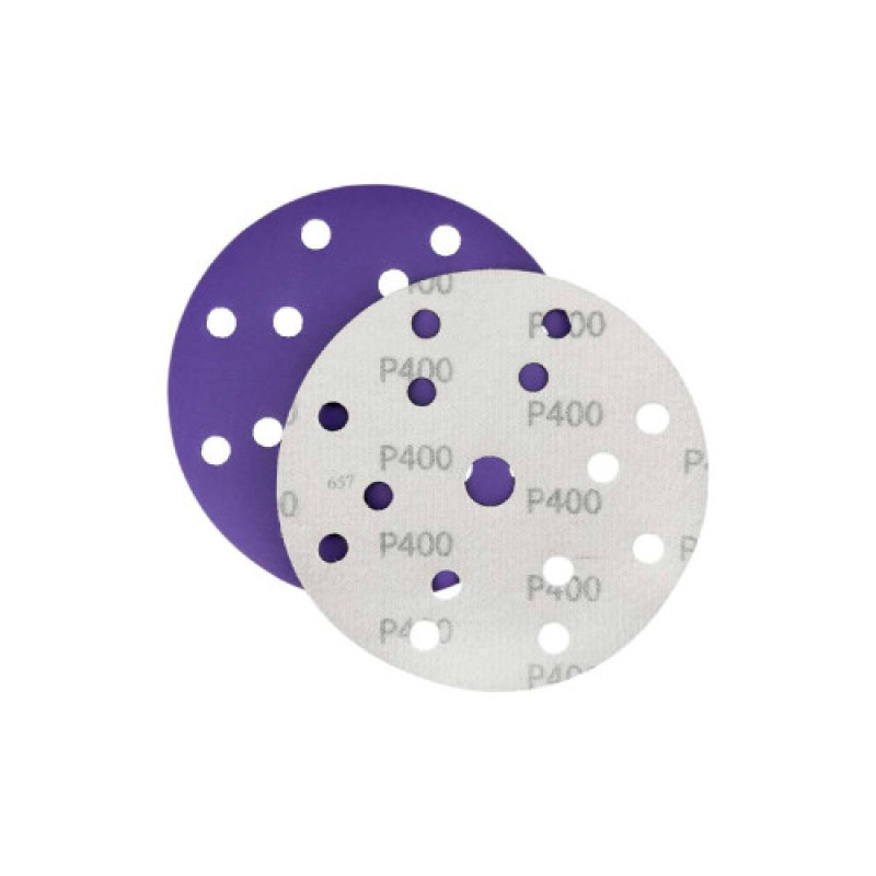 Наждачная бумага фиолетовая D150 мм P400 Velcro (тип зерна – керамика) 15 отверстий аналог 3М Sunmight L737U.